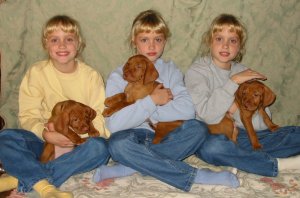 Hannah, Gabrielle, Leah (with Pippi, Bozo, Annie)